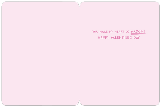 Valentine's Day 'Vroom!' Pink Car & Animals Greeting Card | Cute Valentine's Day Greeting Card
