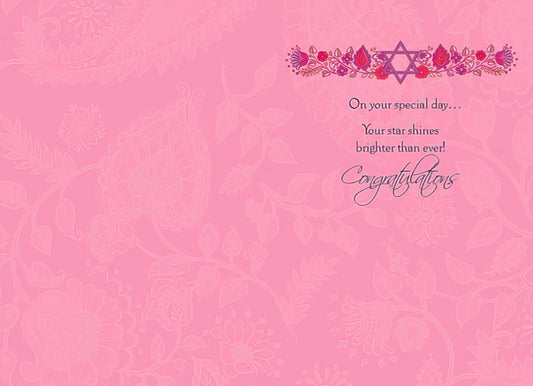 Happy Bat Mitzvah Card: Shine Bright Star of David Celebration | Religious Bar Mitzvah Greeting Card