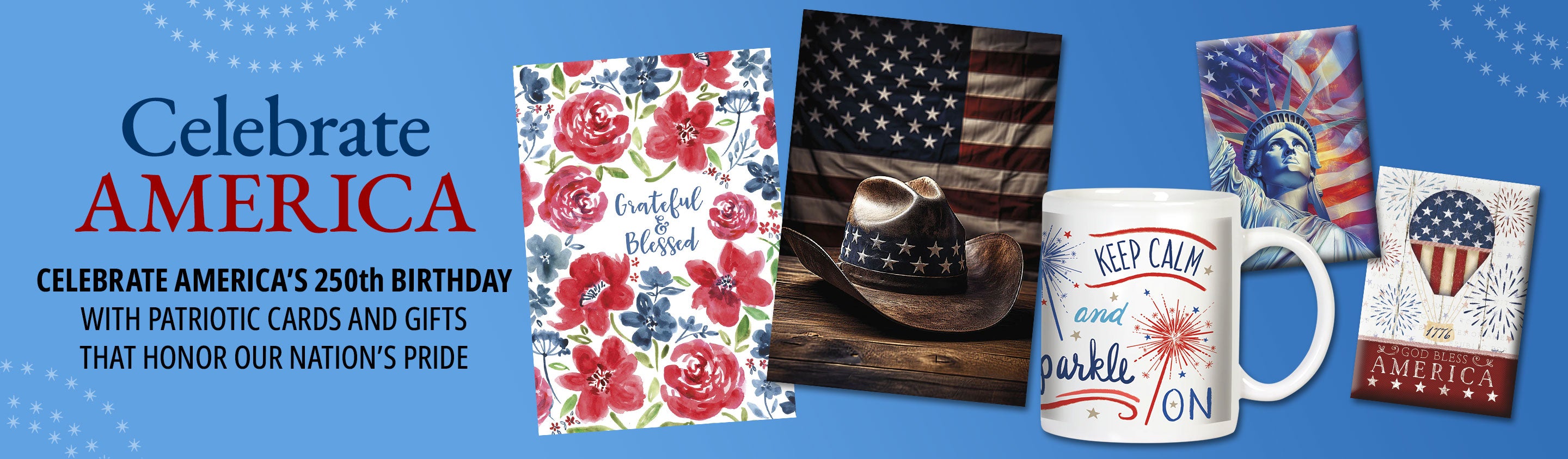 Celebrate America's 250th Birthday with patriotic cards and gifts that honor our nation's pride