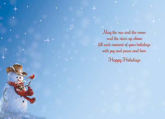 10 cards (1 design)Smiling Snowman Wearing Sombrero Boxed Christmas Glitter Cards