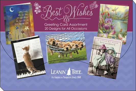 Enjoy the convenience and variety of boxed greeting cards from Leanin' Tree! Each Boxed Greeting Card Assortment includes 20 greeting cards featuring colorful interiors with 22 envelopes.