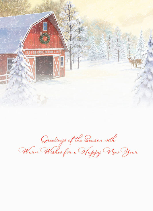 Whitetail Bucks Outside Barn Christmas Card Single
