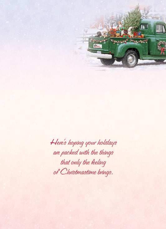 Green Pickup w/ Gifts Christmas Card Single