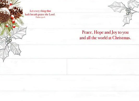 Peace Hope and Joy Cardinal in Pine Scripture Christmas Card