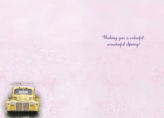 Yellow Pickup with Flowers in Bed Easter Card