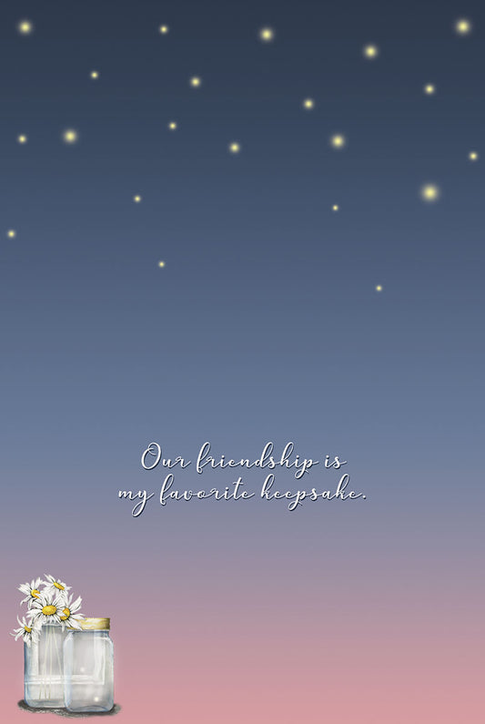 Friendship Card: Flowers, Fireflies & Mason Jars by Window | Heartfelt Friendship Greeting Card