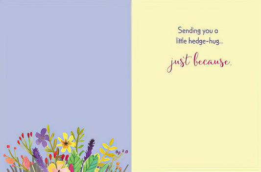 Cute Hedgehog Flower Crown Friendship Card - 'Just Because' Hug | Cute Friendship Greeting Card