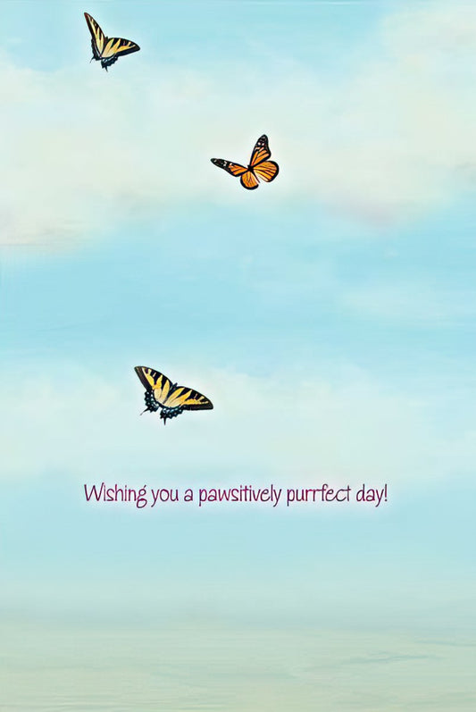 Cute Kitten & Butterfly Friendship Greeting Card - Pawsitively Purrfect Day | Cute Friendship Greeting Card