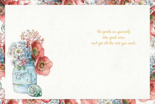 Get Well Wishes Card with Coastal Mason Jars & Flowers | Encouraging Get Well Greeting Card