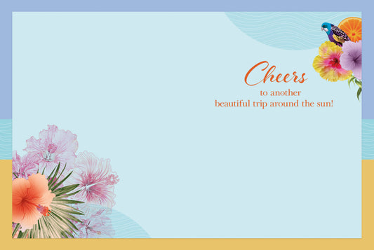 Tropical Birthday Card: Cheers to Another Trip Around the Sun | Lighthearted Birthday Greeting Card