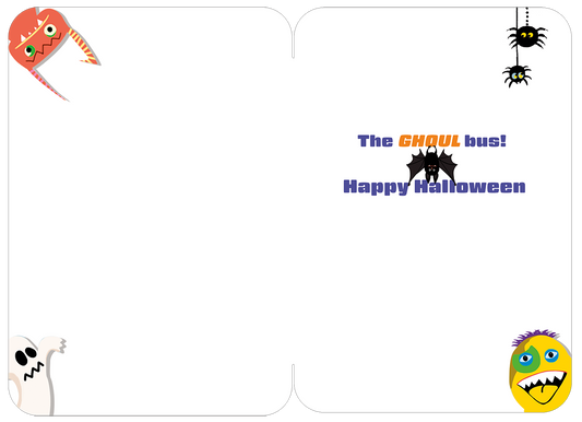 Triple Decker Ghoul Bus with Funny Monsters Halloween Card