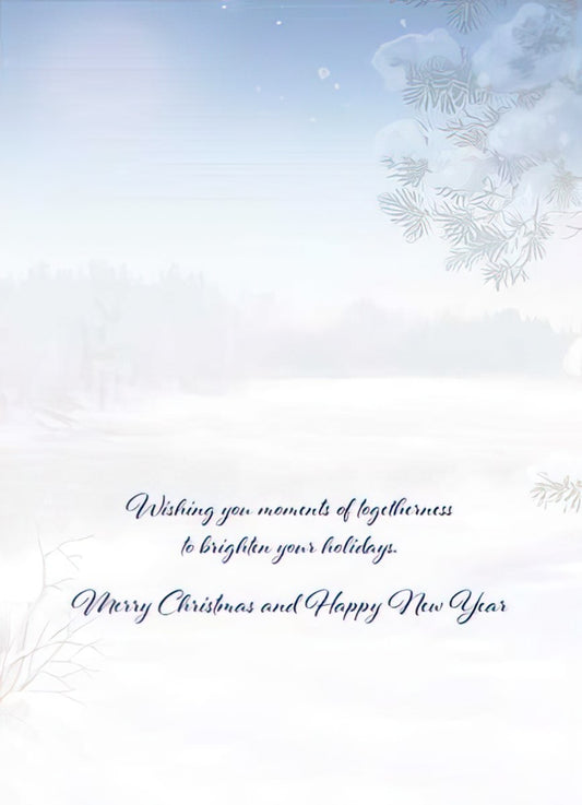 Winter River and House Scene Premium Embossed Christmas Card