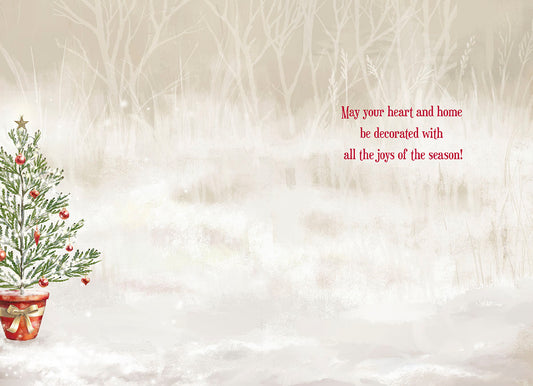 Decorated Xmas Tree In Forest Christmas Card Single