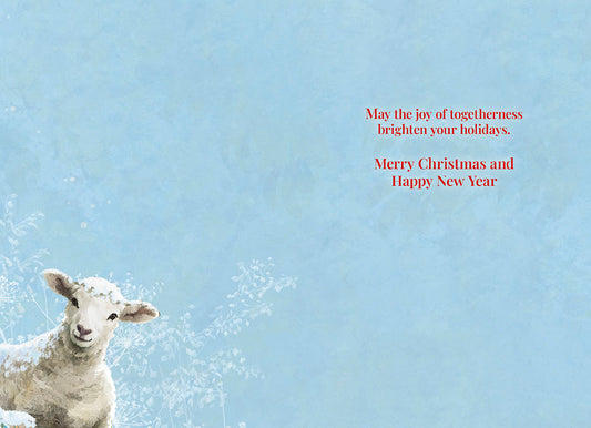 Farm Animals on Snowy Fence Christmas Card
