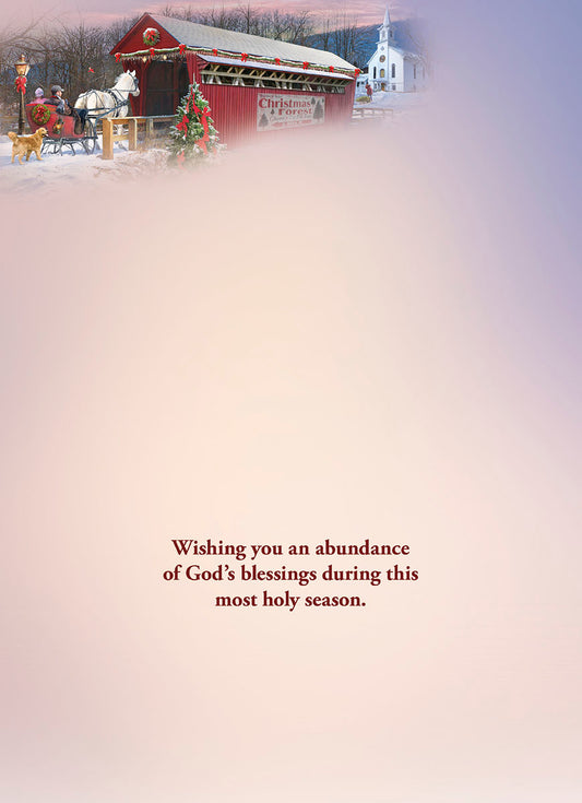 Let Us Adore Him Sleigh Crosses Red Bridge Christmas Card