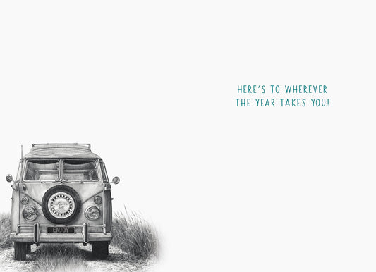 Volkswagon Bus W/Turquoise Highlight Birthday Card