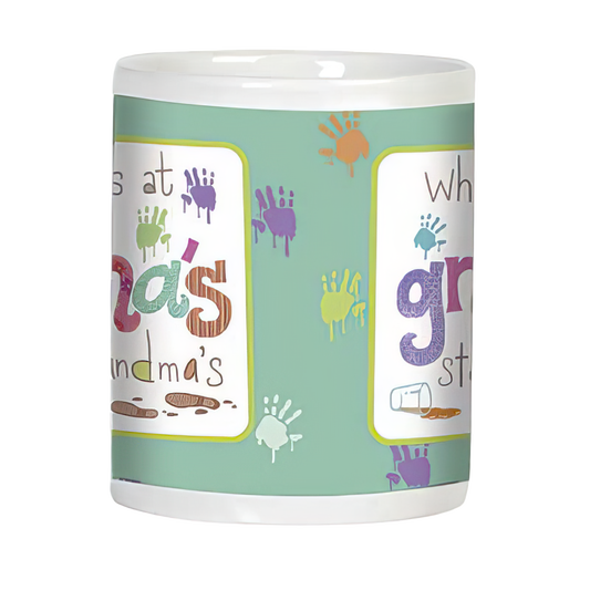 These 12-oz ceramic mugs with easy-grip handles are dishwasher and microwave safe and feature unique designs with delightful sayings.