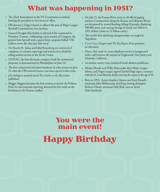 1951 Birthday Card: You Were the Main Event That Year! | Complimentary Birthday Greeting Card