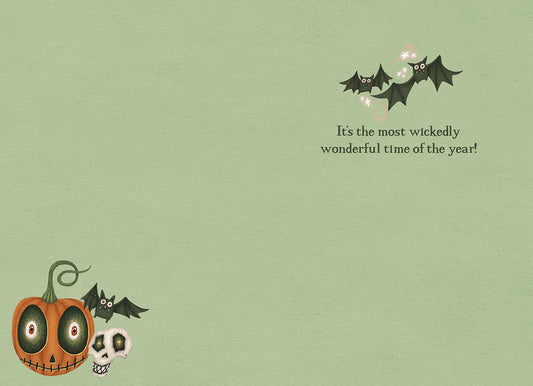 Typography w/ Skulls, Bats & Pumpkin Single Halloween Card