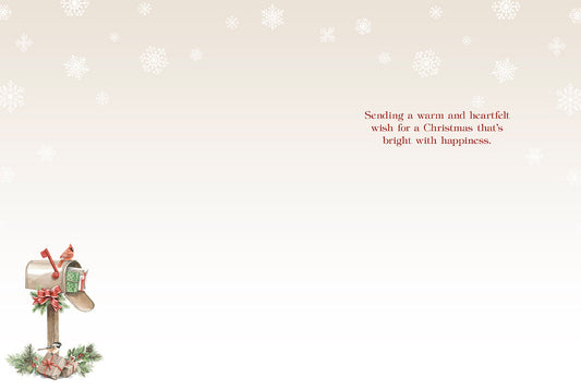 Cardinal on Mailbox Full of Presents Premium Embossed Christmas Card