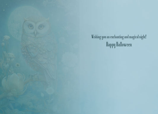 Owl on Tree Branch and Moon in Back Single Halloween Card