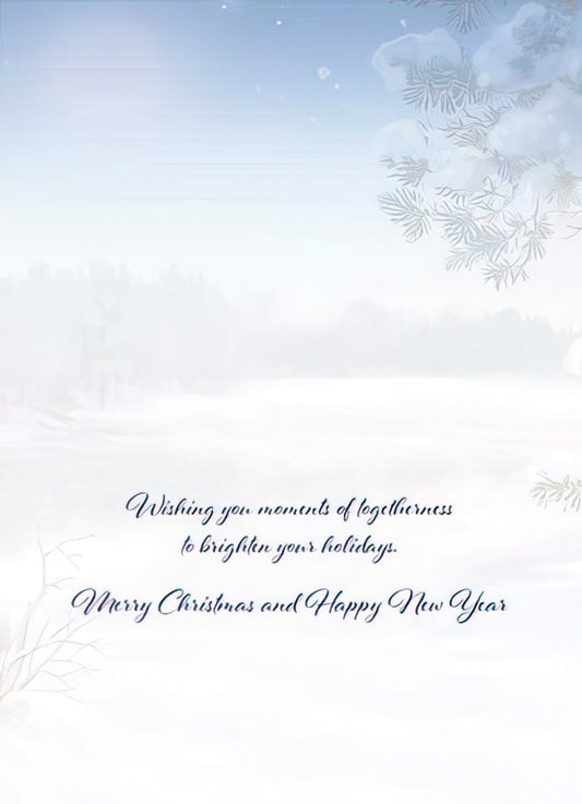 Winter Landscape w/ River and Sunset Premium Embossed Christmas Card