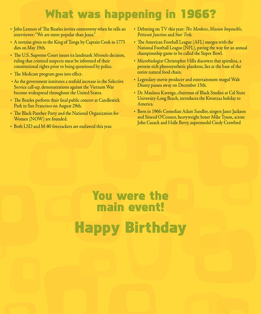 1966 Birthday Card: You Were The Main Event! | Lighthearted Birthday Greeting Card