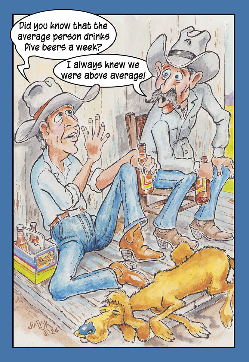 Front: Did you know that the average person drinks five beers a week? I always knew we were above average!