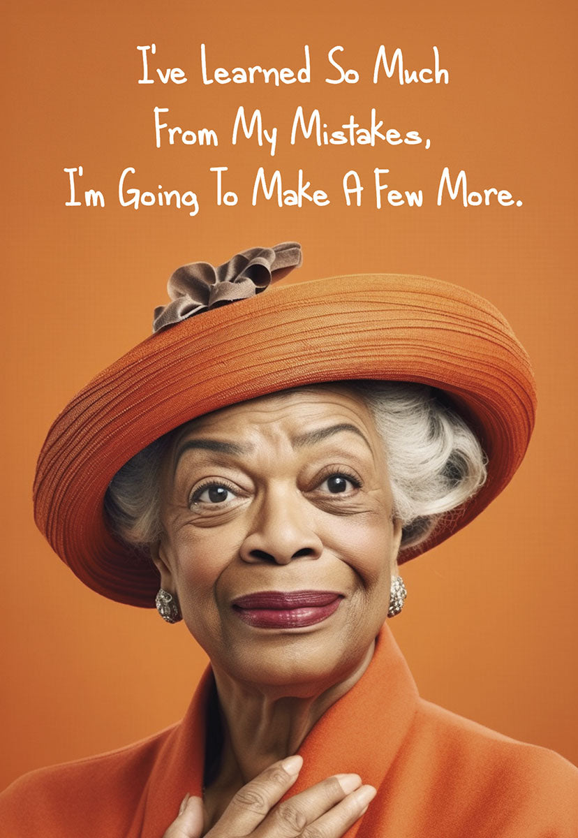 Front: I’ve learned so much from my mistakes, I’m going to make a few more.