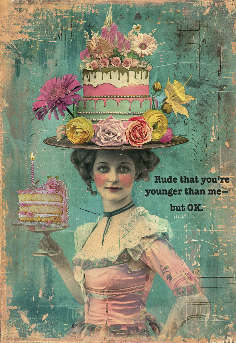 Victorian Woman with Cake on Head Birthday Card