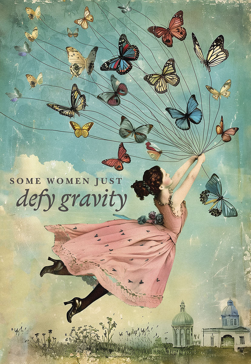 Defy Gravity Woman Carried by Butterflies Birthday Card