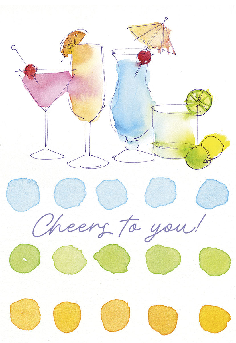 Cheers to You! Watercolor Alcoholic Drinks Birthday Card