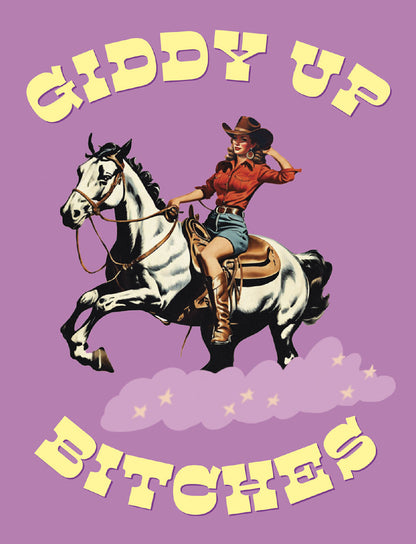 The Giddy Up Bitches Birthday Card showcases eye-catching shiny foil accents that add a dynamic touch to its design. Its full-color interior offers a lively space for your birthday message, complemented by a vibrant envelope for a polished presentation. Printed on sustainably sourced paper with soy-based inks and crafted in the U.S.A., this card delivers both quality and eco-friendly appeal for a standout celebration.