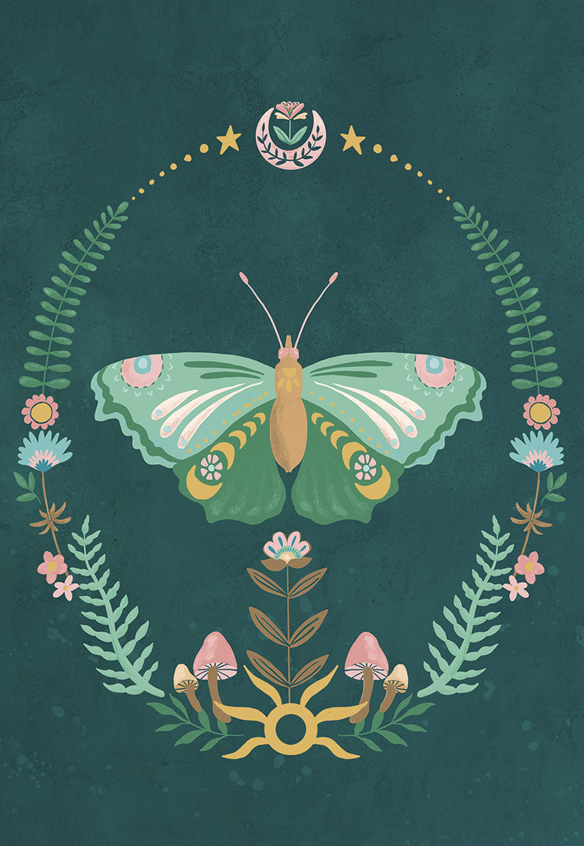 Floral Moth Blank Card