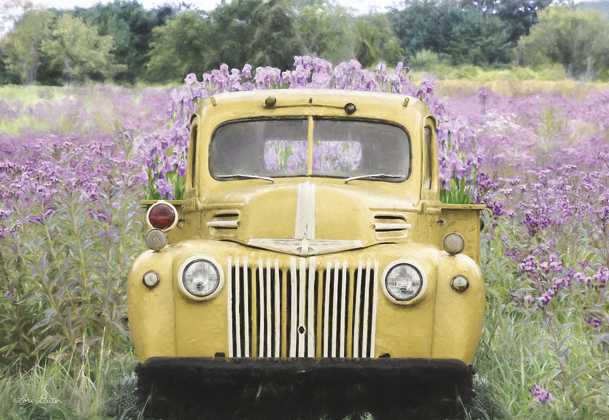 Yellow Truck in Flower Field Blank Card