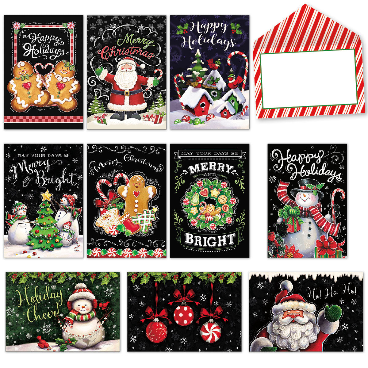 Inside: 20 Christmas Cards (2 each of 10 designs)