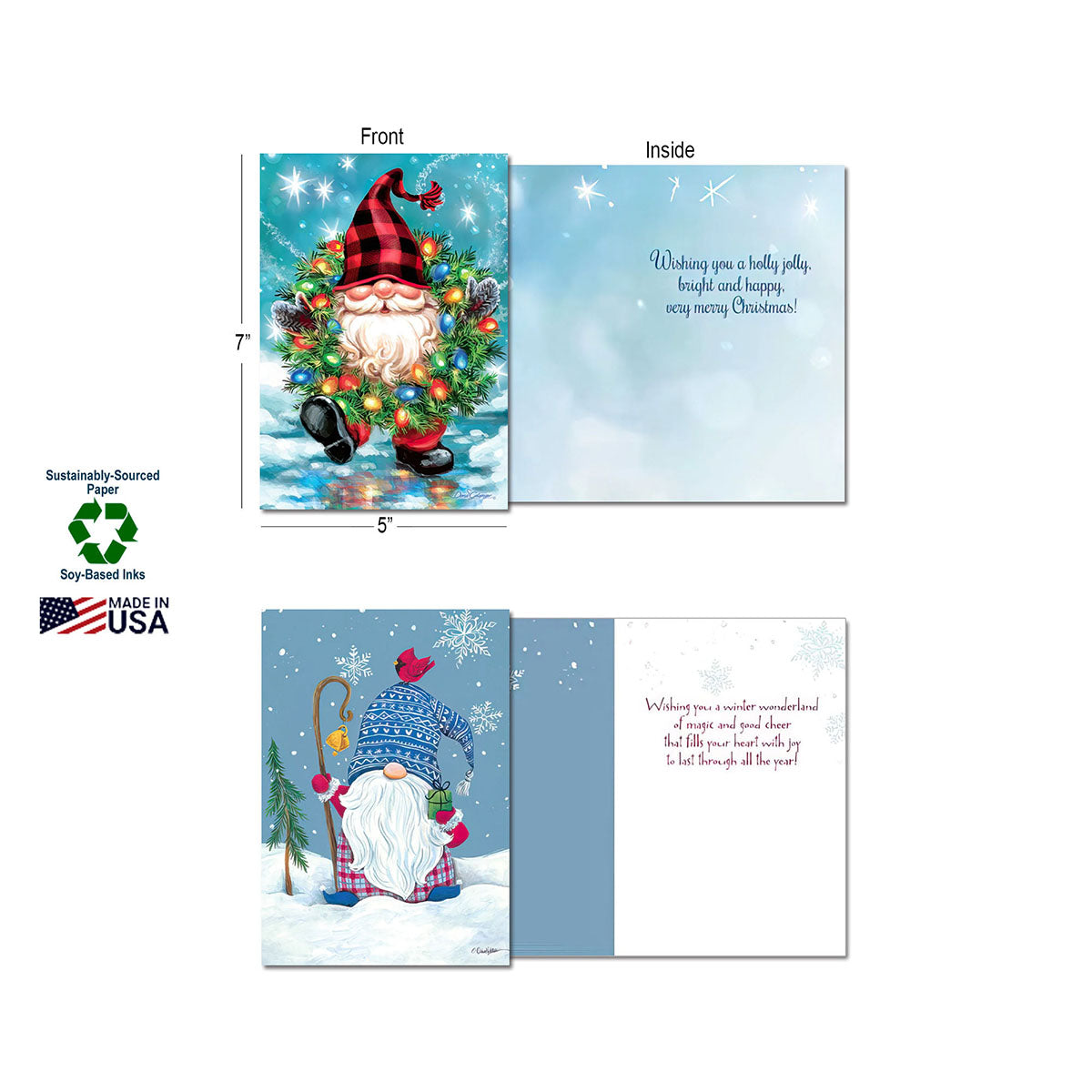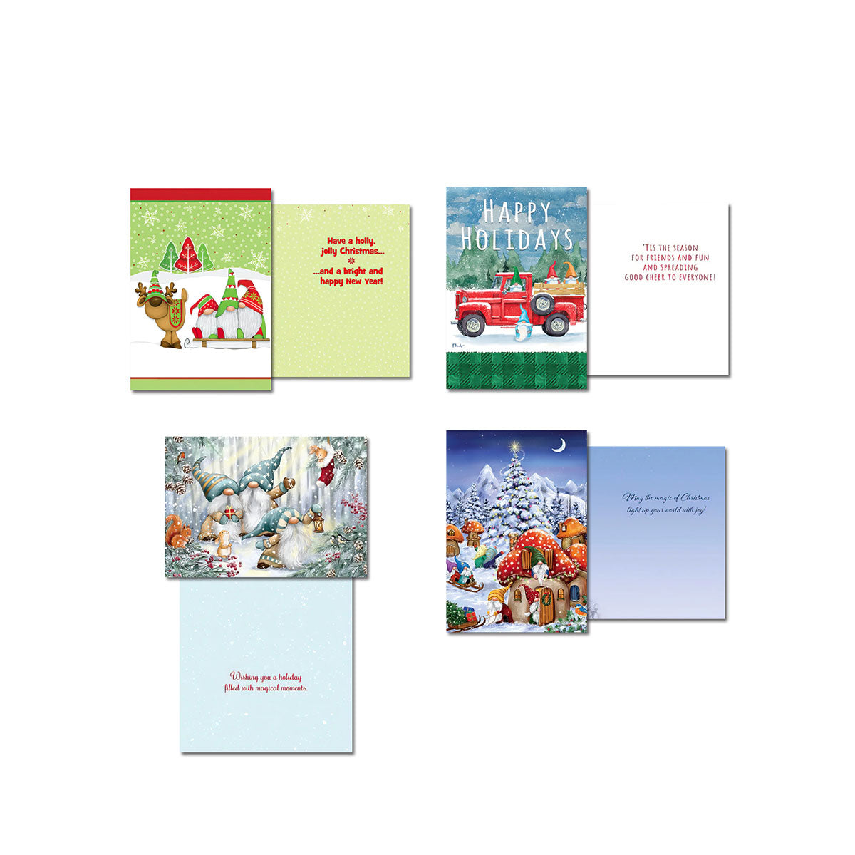 Filled with exquisite Christmas cards, the "Gnome for the Holidays" assortment is ideal for wishing all of your friends, loved ones, and co-workers a "Merry Christmas" and "Happy Holidays"!
