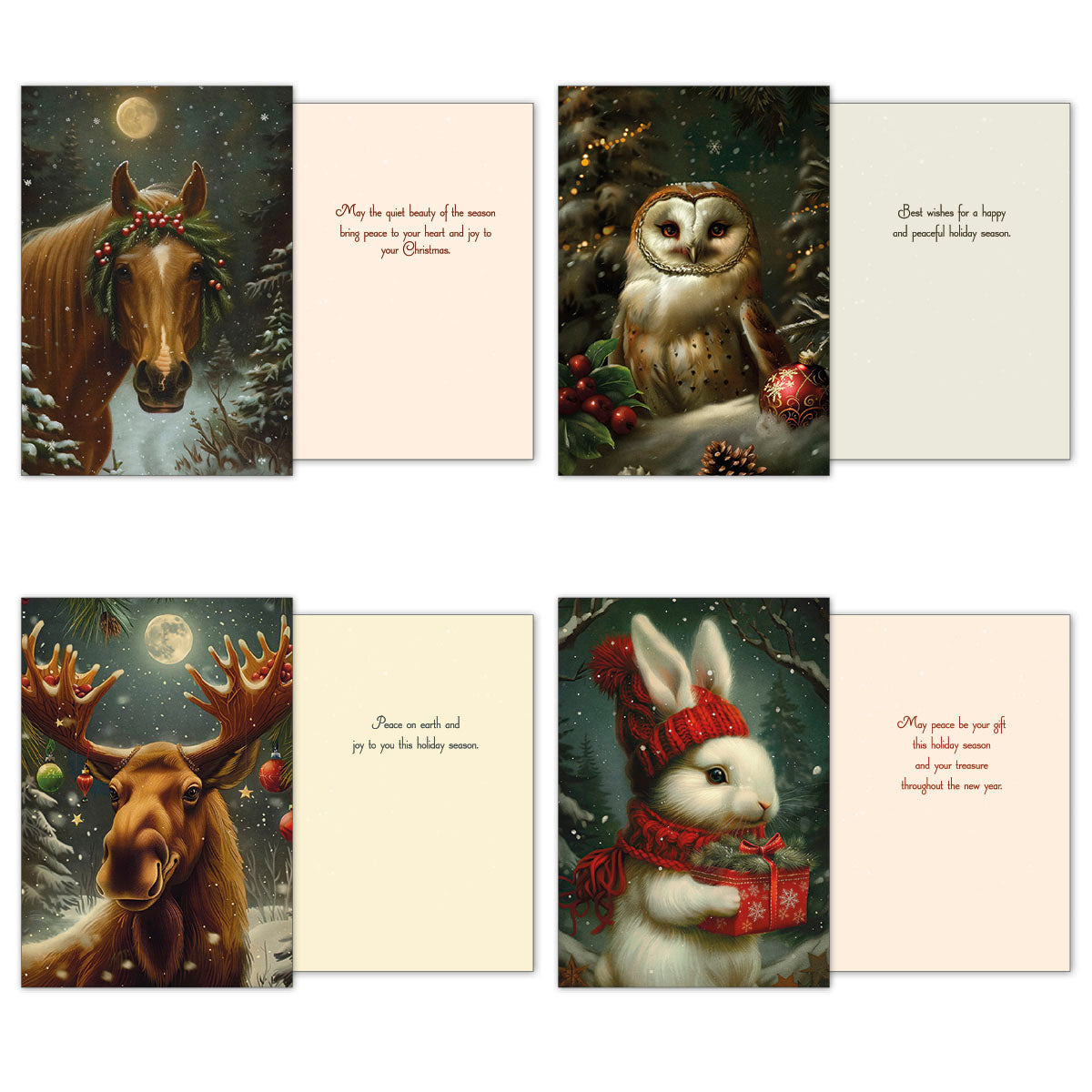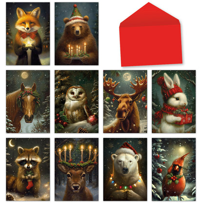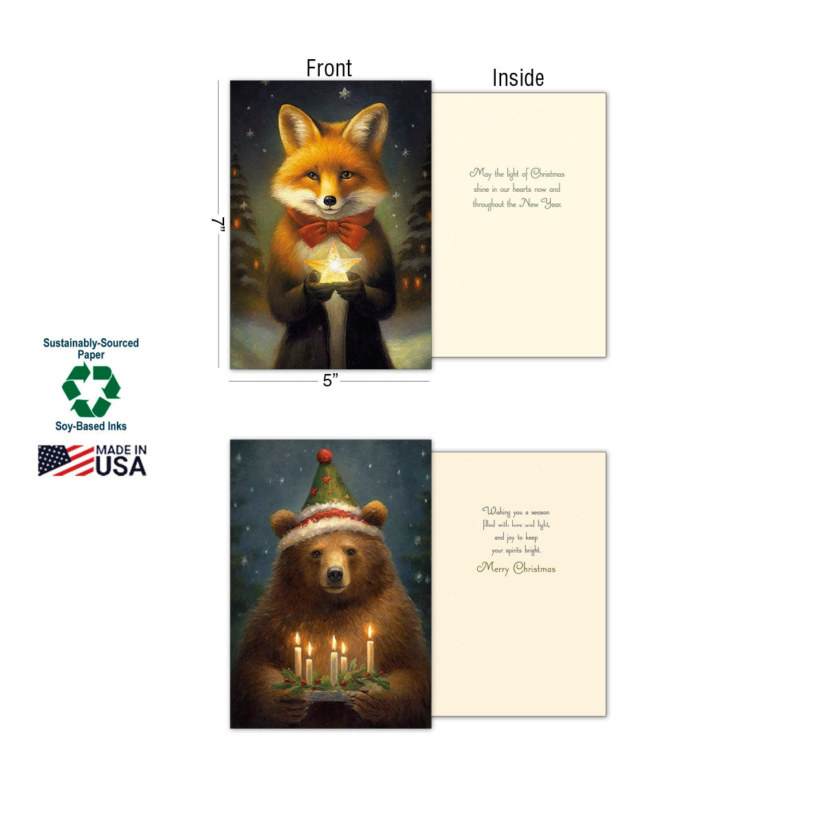 Filled with 20 beautifully designed Christmas cards featuring 10 unique woodland-themed designs, this assortment is perfect for spreading holiday cheer to friends, family, and colleagues. Each card comes with a coordinating envelope, all housed in an elegant portfolio. Printed on sustainably sourced paper with soy-based inks, these cards combine eco-conscious craftsmanship with festive charm. Proudly made in the U.S.A., this set offers a thoughtful and stylish way to send your warmest holiday wishes.