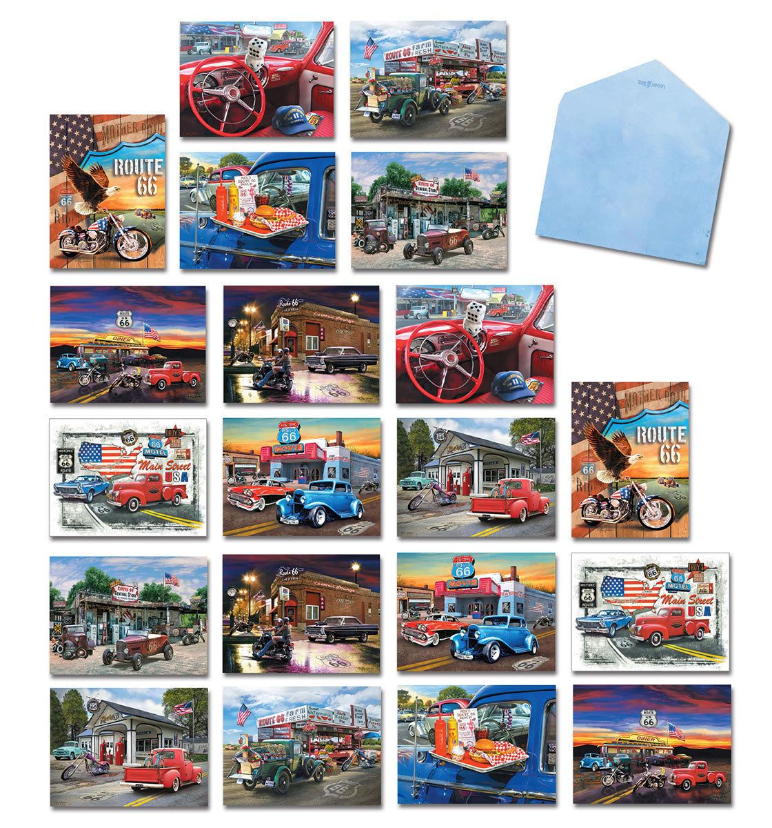 Front: Route 66 By Greg Giordano Greeting Card Assortment 20 Designs for All Occasions