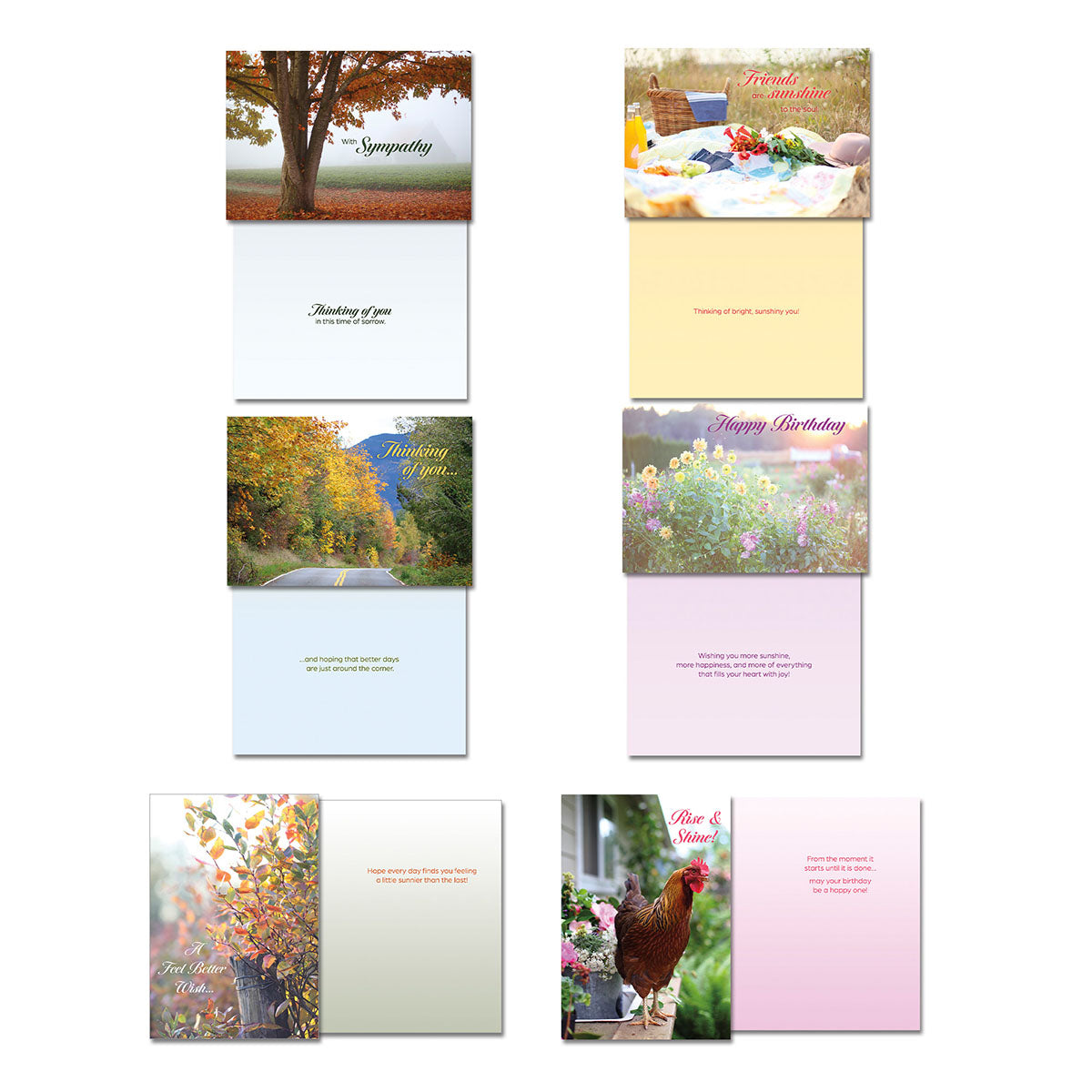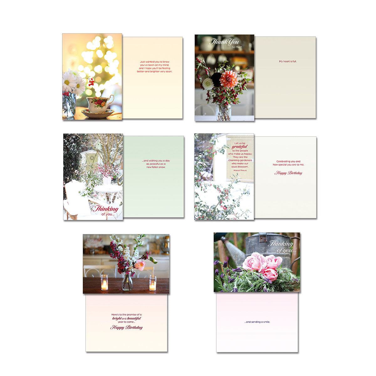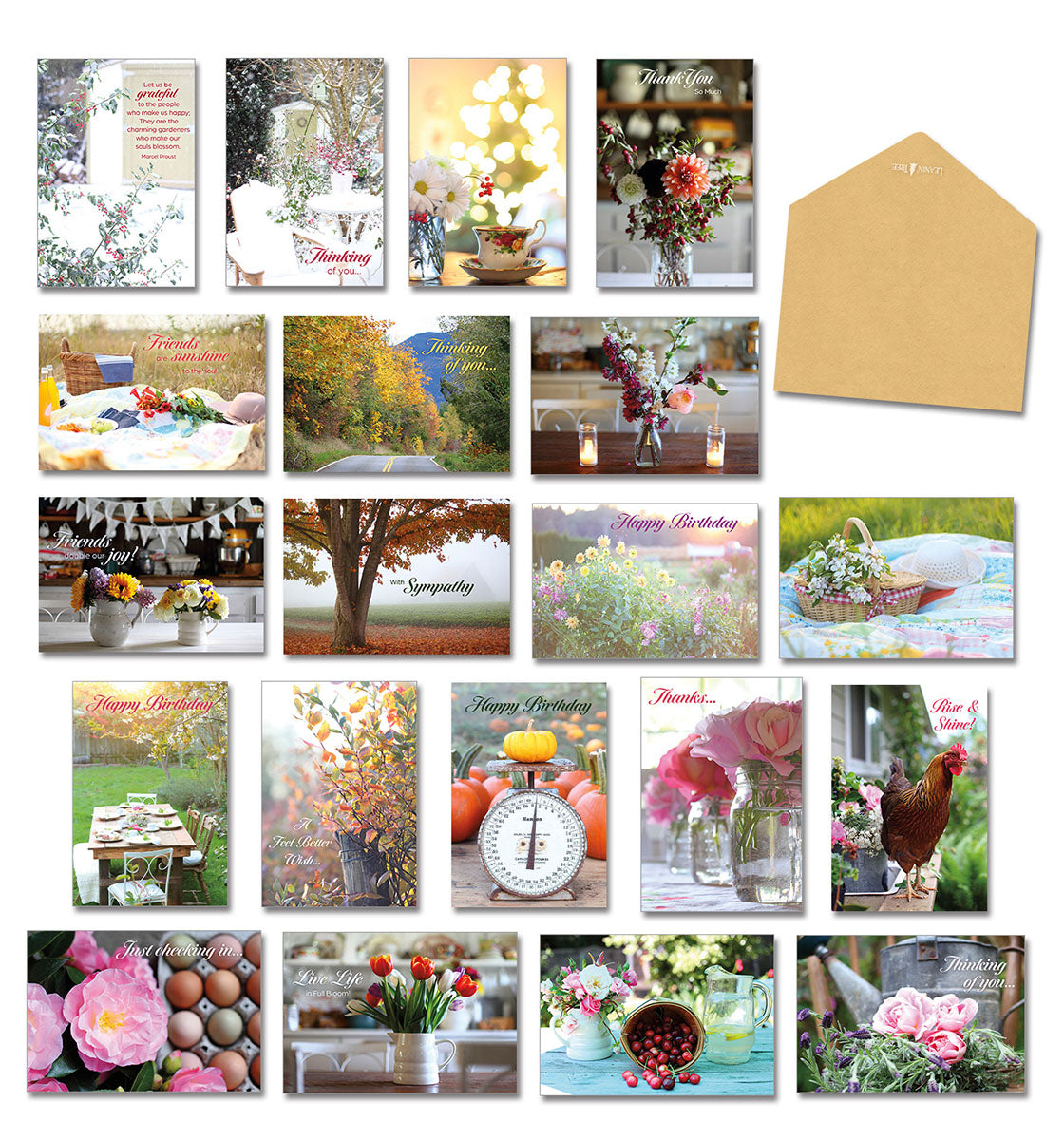 Suitable for gift giving, this portfolio boxed assortment of 20 different greeting cards featuring the art of Melanie Beilner is ideal to have on hand! You’ll always be ready to show your thoughtfulness with a beautiful greeting card.