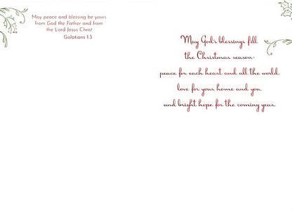 Inside: May God’s blessings fill the Christmas season: peacefor each heart and all the world, lovefor your home and you, and bright hope for the coming year. | May peace and blessing be yours from God the Father and from the Lord Jesus Christ. Galatians 1:3