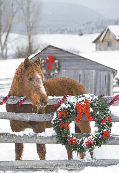 Scripture: Creamy beige background and a soft “Peace on Earth …”(Luke 2:10-11) and festive flourishes.