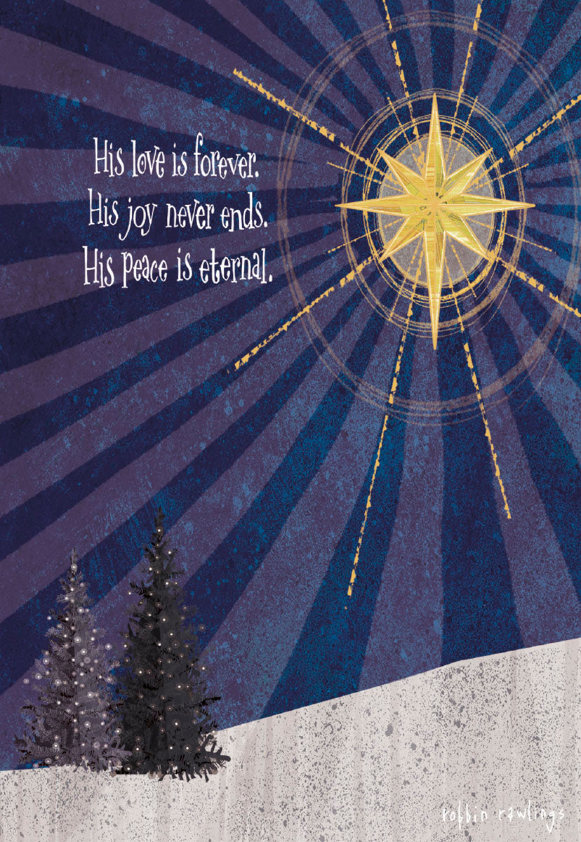 Front: His love is forever. His joy never ends. His peace is eternal.