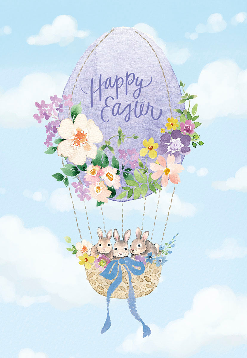 Egg-Shaped Hot Air Balloon with Bunnies Easter Card
