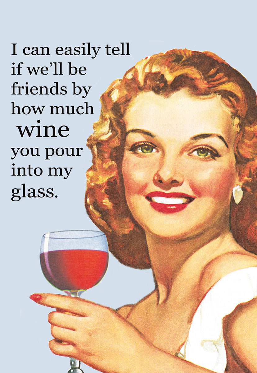Front: I can easily tell if we’ll be friends by how much wine you pour into my glass.