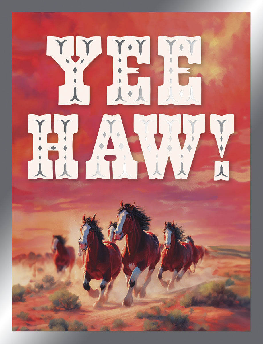 The Yee Haw! Friendship Card makes a bold statement with its shiny foil accents and vibrant full-color interior. Delivered with a colorful envelope, it’s printed on sustainably sourced paper using eco-friendly soy-based inks. Made in the U.S.A., this card is perfect for daring friends who appreciate style and sustainability.
