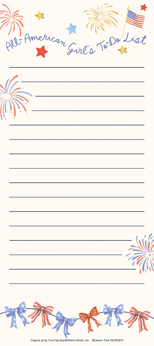 Keep track of your to-do list with patriotic flair. This magnetic list pad features a cheerful design with bows, flags, stars, and fireworks—perfect for your kitchen, office, or anywhere you need a reminder. Tear off sheets as you complete tasks. A fun, functional gift for anyone who loves organizing with style.