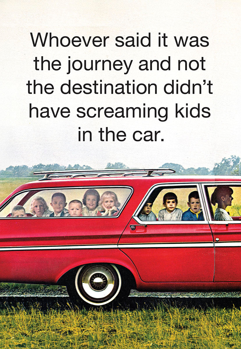 Front: Whoever said it was the journey and not the destination didn’t have screaming kids in the car.