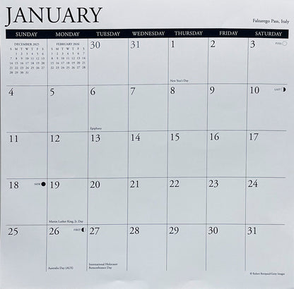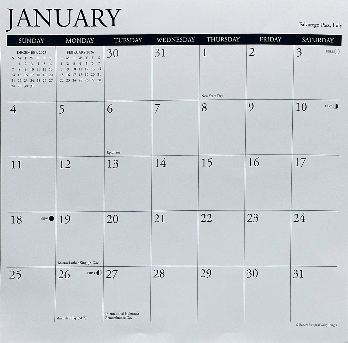 The 2026 A Mountain View Wall Calendar combines functionality with serene mountain imagery to enhance any home or office space. Printed on premium quality paper, it offers a smooth writing surface for organizing important dates and appointments. Each month features stunning full-color photographs that bring a sense of calm and natural beauty to your daily planning. This calendar also makes a thoughtful gift for those who appreciate both practicality and scenic inspiration throughout the year.