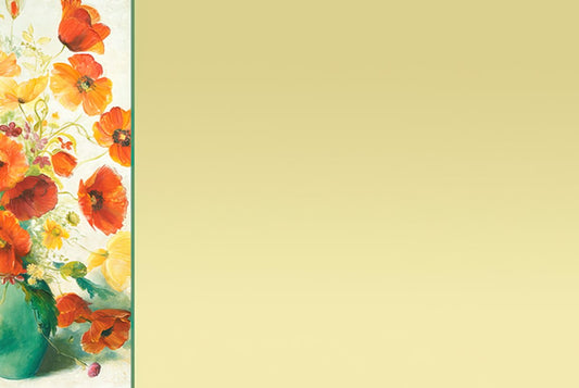 Blank Greeting Card: Turquoise Vase with Vibrant Poppies | Complimentary Blank Greeting Card